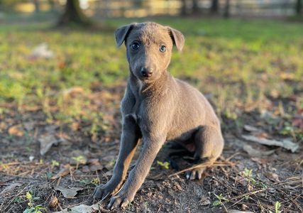 About two and half years ago (August 2020) I started my search back to see what was out there. On a whim I decided to see if there were any puppies out there. I found a few breeders out there. I began to contact a couple that were close to me. I did not get a response from either one of them. The third one that I contacted was The Greyt Family Farm. I received an almost immediate response. Jeff also had Mustang a beautiful blue greyhound and Wonder Woman a beautiful high spirited black female. This was the pairing that I had in my mind that I wanted. I was fortunate that was to be the pairing for his next litter. Jeff kept in contact throughout the whole process. He sent pictures as soon as the litter was born. I was able to get an adorable blue female and the exact puppy that I chose from the first pictures. She brought so much joy to my life.
