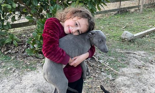 The puppies are used to new people and kids, and have no problems showing affection to new people. Greyhound puppies, like retired racing greyhounds, still need a lot of attention. Greyhounds have a hard time being left alone as a puppy.